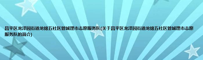 本文关于昌平区龙泽园街道龙锦五社区管城理市志愿服务队的简介就讲解完毕,希望对大家有所帮助。