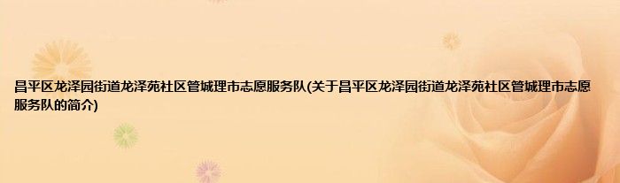 本文关于昌平区龙泽园街道龙泽苑社区管城理市志愿服务队的简介就讲解完毕,希望对大家有所帮助。