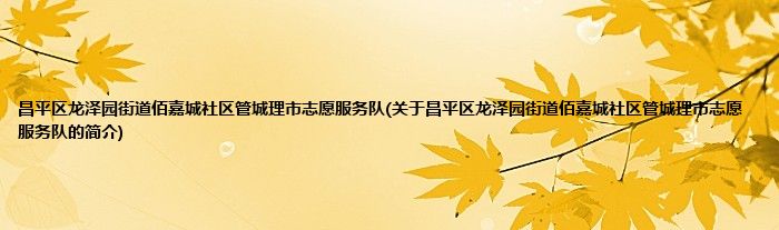 本文关于昌平区龙泽园街道佰嘉城社区管城理市志愿服务队的简介就讲解完毕,希望对大家有所帮助。