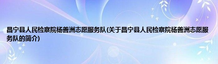 大家好,昌宁县人民检察院杨善洲志愿服务队,关于昌宁县人民检察院杨善洲志愿服务队的简介很多人还不知道,现在让我们一起来看看吧!