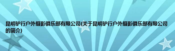 本文关于昆明驴行户外摄影俱乐部有限公司的简介就讲解完毕,希望对大家有所帮助。