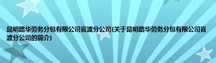 昆明路华劳务分包有限公司官渡分公司(关于昆明路华劳务分包有限公司官渡分公司的简介)
