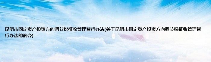 大家好,昆明市固定资产投资方向调节税征收管理暂行办法,关于昆明市固定资产投资方向调节税征收管理暂行办法的简介很多人还不知道,现在让我们一起来看看吧!
