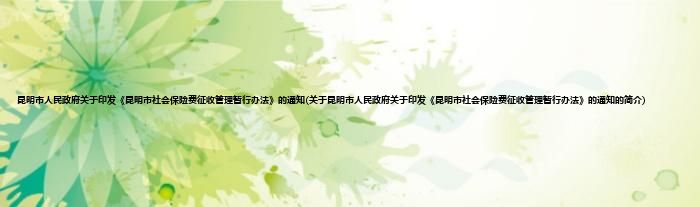 大家好,昆明市人民政府关于印发《昆明市社会保险费征收管理暂行办法》的通知,关于昆明市人民政府关于印发《昆明市社会保险费征收管理暂行办法》的通知的简介很多人还不知道,现在让我们一起来看看吧!