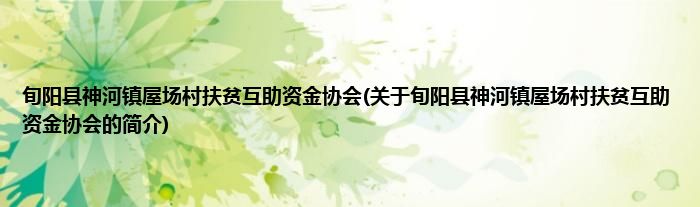 本文关于旬阳县神河镇屋场村扶贫互助资金协会的简介就讲解完毕,希望对大家有所帮助。