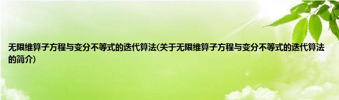 大家好,无限维算子方程与变分不等式的迭代算法,关于无限维算子方程与变分不等式的迭代算法的简介很多人还不知道,现在让我们一起来看看吧!