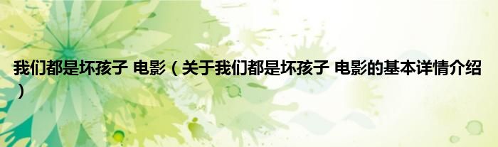 本文关于我们都是坏孩子 电影的基本详情介绍就讲解完毕,希望对大家有所帮助。