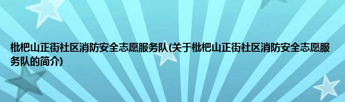 枇杷山正街社区消防安全志愿服务队(关于枇杷山正街社区消防安全志愿服务队的简介)