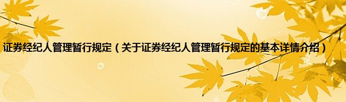 本文关于证券经纪人管理暂行规定的基本详情介绍就讲解完毕,希望对大家有所帮助。