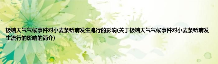 本文关于极端天气气候事件对小麦条锈病发生流行的影响的简介就讲解完毕,希望对大家有所帮助。