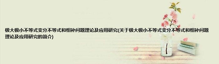 大家好,极大极小不等式变分不等式和相补问题理论及应用研究,关于极大极小不等式变分不等式和相补问题理论及应用研究的简介很多人还不知道,现在让我们一起来看看吧!