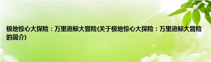 本文关于极地惊心大探险:万里追鲸大冒险的简介就讲解完毕,希望对大家有所帮助。
