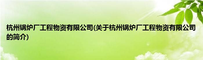 本文关于杭州锅炉厂工程物资有限公司的简介就讲解完毕,希望对大家有所帮助。