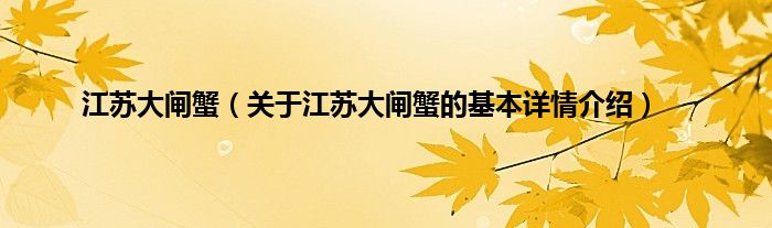 本文关于江苏大闸蟹的基本详情介绍就讲解完毕,希望对大家有所帮助。