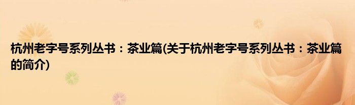 大家好,杭州老字号系列丛书:茶业篇,关于杭州老字号系列丛书:茶业篇的简介很多人还不知道,现在让我们一起来看看吧!