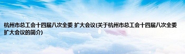 本文关于杭州市总工会十四届八次全委 扩大会议的简介就讲解完毕,希望对大家有所帮助。