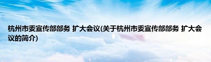 大家好,杭州市委宣传部部务 扩大会议,关于杭州市委宣传部部务 扩大会议的简介很多人还不知道,现在让我们一起来看看吧!