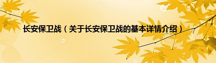 本文关于长安保卫战的基本详情介绍就讲解完毕,希望对大家有所帮助。
