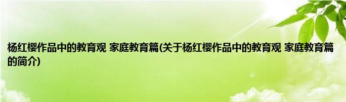 本文关于杨红樱作品中的教育观 家庭教育篇的简介就讲解完毕,希望对大家有所帮助。