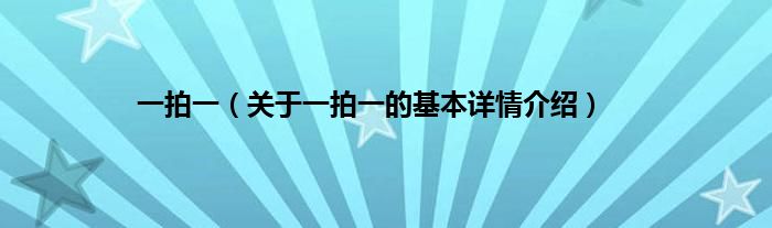 本文关于一拍一的基本详情介绍就讲解完毕,希望对大家有所帮助。