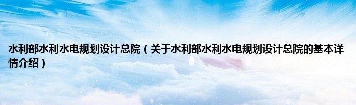 水利部水利水电规划设计总院(关于水利部水利水电规划设计总院的基本详情介绍)