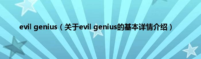 本文关于evil genius的基本详情介绍就讲解完毕,希望对大家有所帮助。