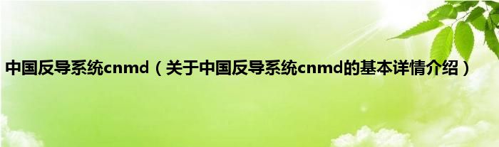 本文关于中国反导系统cnmd的基本详情介绍就讲解完毕,希望对大家有所帮助。
