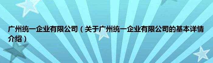 本文关于广州统一企业有限公司的基本详情介绍就讲解完毕,希望对大家有所帮助。