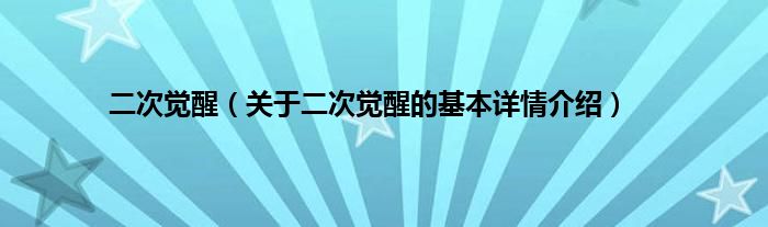 本文关于二次觉醒的基本详情介绍就讲解完毕,希望对大家有所帮助。