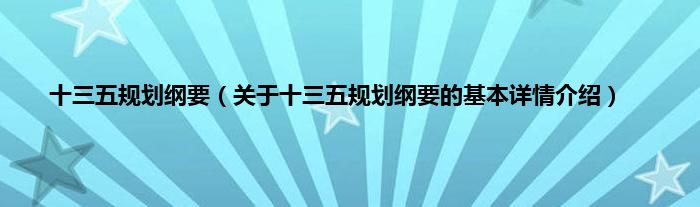 本文关于十三五规划纲要的基本详情介绍就讲解完毕,希望对大家有所帮助。