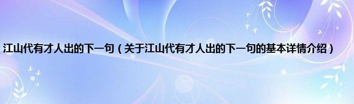 江山代有才人出的下一句(关于江山代有才人出的下一句的基本详情介绍)