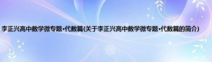 本文关于李正兴高中数学微专题·代数篇的简介就讲解完毕,希望对大家有所帮助。
