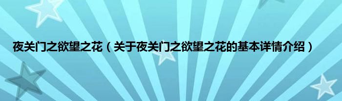 本文关于夜关门之欲望之花的基本详情介绍就讲解完毕,希望对大家有所帮助。