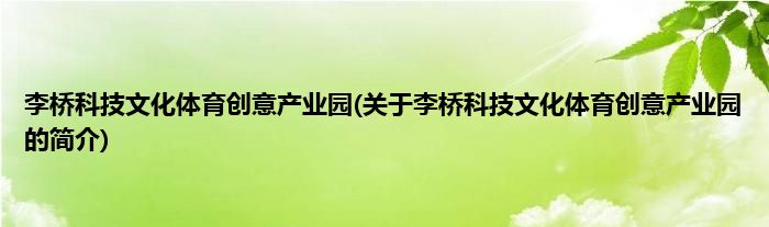 大家好,李桥科技文化体育创意产业园,关于李桥科技文化体育创意产业园的简介很多人还不知道,现在让我们一起来看看吧!