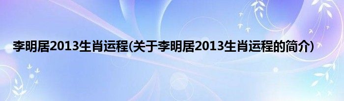 李明居2013生肖运程(关于李明居2013生肖运程的简介)