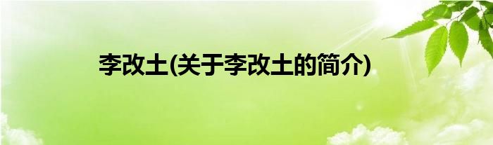 大家好,李改土,关于李改土的简介很多人还不知道,现在让我们一起来看看吧!