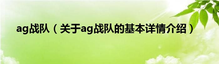 本文关于ag战队的基本详情介绍就讲解完毕,希望对大家有所帮助。