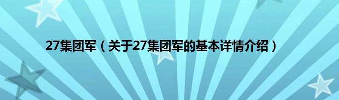 本文关于27集团军的基本详情介绍就讲解完毕,希望对大家有所帮助。