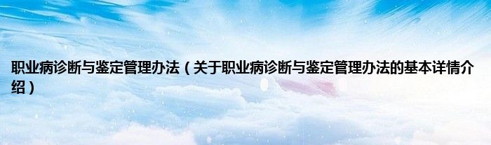 职业病诊断与鉴定管理办法(关于职业病诊断与鉴定管理办法的基本详情介绍)