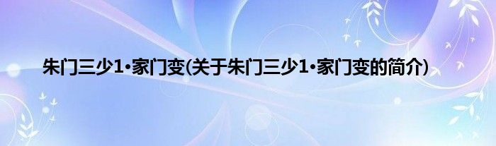 本文关于朱门三少1·家门变的简介就讲解完毕,希望对大家有所帮助。