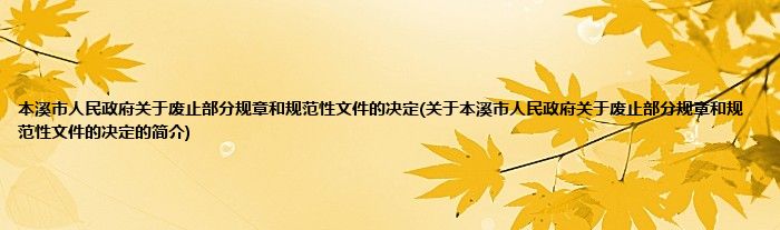 本溪市人民政府关于废止部分规章和规范性文件的决定(关于本溪市人民政府关于废止部分规章和规范性文件的决定的简介)