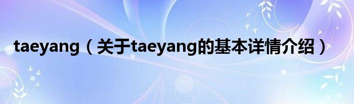 本文关于taeyang的基本详情介绍就讲解完毕,希望对大家有所帮助。