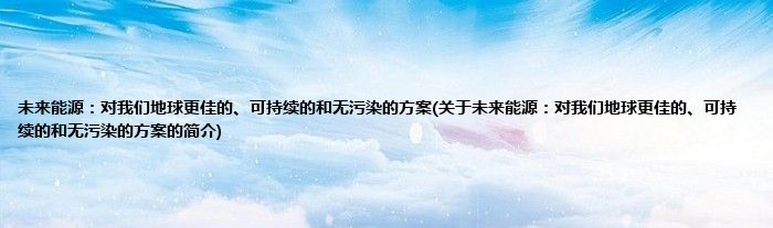 本文关于未来能源:对我们地球更佳的、可持续的和无污染的方案的简介就讲解完毕,希望对大家有所帮助。