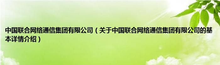 本文关于中国联合网络通信集团有限公司的基本详情介绍就讲解完毕,希望对大家有所帮助。