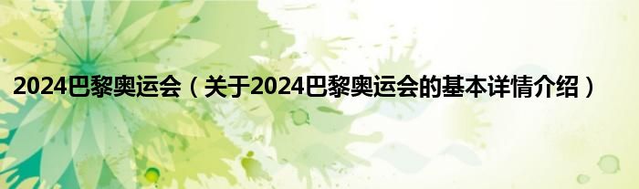 本文关于2024巴黎奥运会的基本详情介绍就讲解完毕,希望对大家有所帮助。