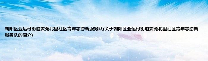 本文关于朝阳区亚运村街道安苑北里社区青年志愿者服务队的简介就讲解完毕,希望对大家有所帮助。