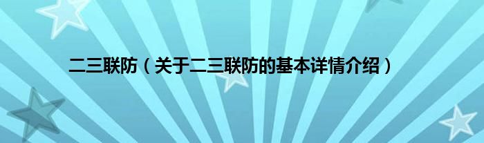本文关于二三联防的基本详情介绍就讲解完毕,希望对大家有所帮助。