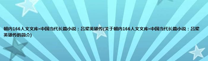 本文关于朝内166人文文库·中国当代长篇小说:吕梁英雄传的简介就讲解完毕,希望对大家有所帮助。