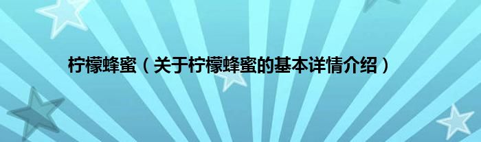 本文关于柠檬蜂蜜的基本详情介绍就讲解完毕,希望对大家有所帮助。