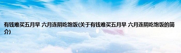 本文关于有钱难买五月早,六月连阴吃饱饭的简介就讲解完毕,希望对大家有所帮助。